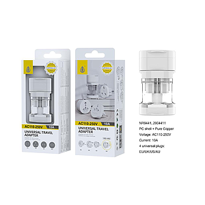 Adaptador Universal de Enchufe 4 EN 1(EU/UK/US/AU), AC110-250V 10A NR9441 Blanco