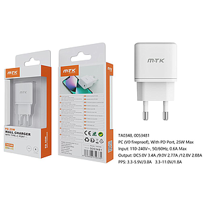 Cargador de Red Rapida Taylor 1 puerto Tipo-C PD 25W/3.4A(Max) Blanco TA0348